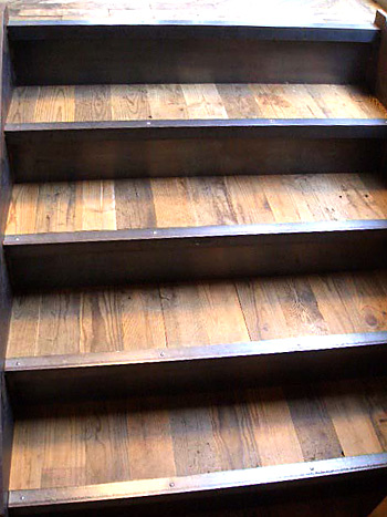 コメント 古材のフローリングを土足の店舗の階段の踏み板に施工されました。